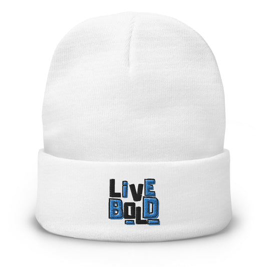 Live Bold - Embroidered Beanie (White)